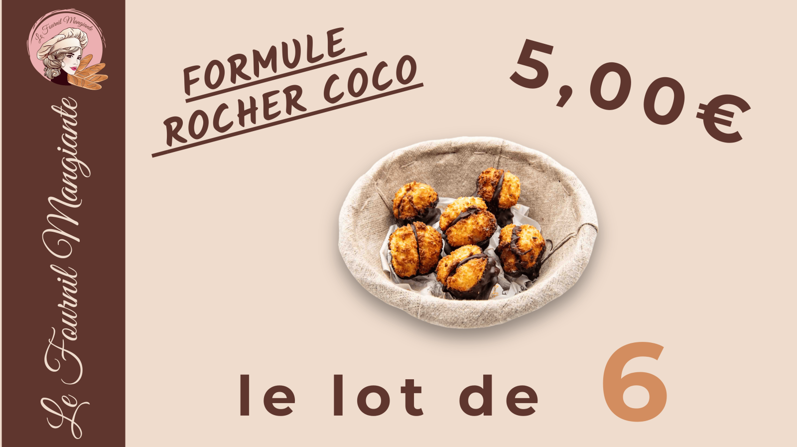 Envie d’une douceur qui allie croustillant et moelleux ? Découvrez notre Formule Rocher Coco au Fournil Mangiante à Sénas ! Pour 5,00€, profitez d’un lot de 6 rochers délicatement dorés, au bon goût de noix de coco et sublimés par une touche de chocolat.