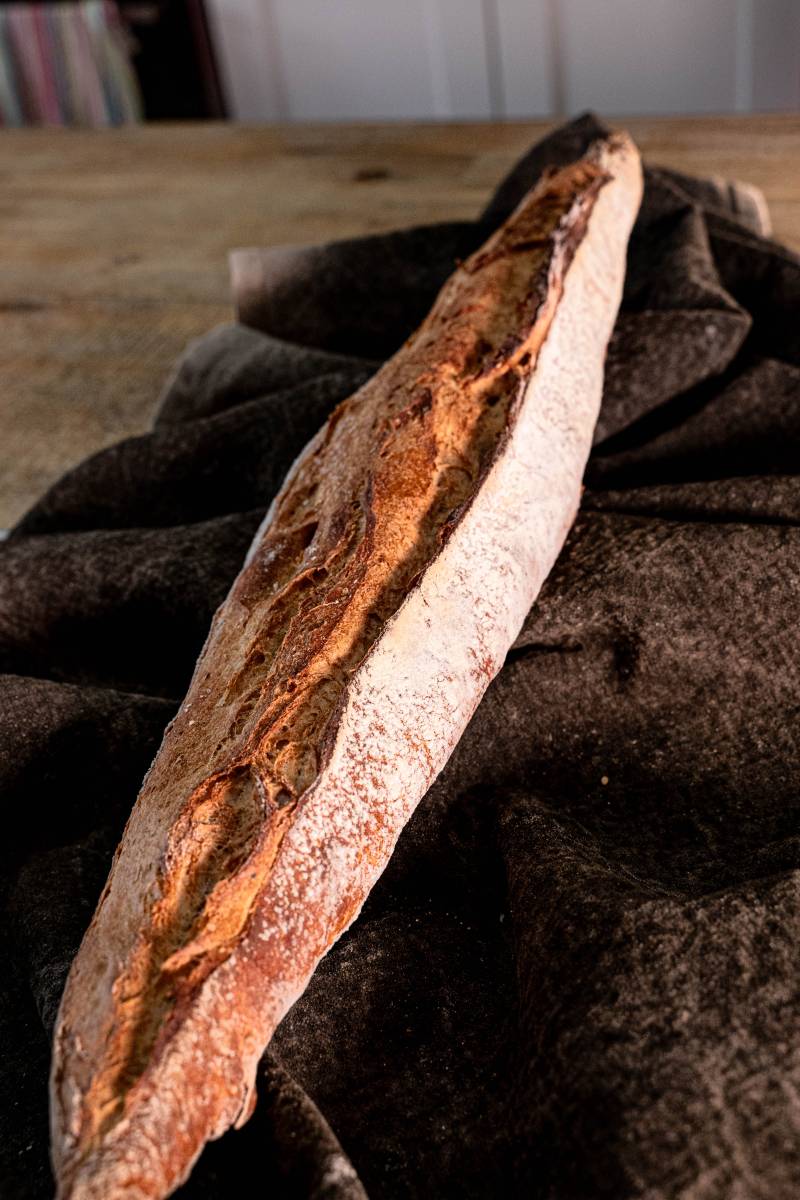 Découvrez l'Aveyronnaise, la star rustique du Fournil Mangiante à Sénas ! Élaborée depuis plus de 20 ans, cette baguette authentique a conquis les amateurs de pain avec ses saveurs acidulées et son arôme de levain de blé. Son goût de froment concentré et sa croûte épaisse en font un produit unique, avec une mie aérée et un alvéolage sauvage. Grâce à sa conservation remarquable, l'Aveyronnaise se déguste tous les jours et avec tous les plats. Elle sublime particulièrement les charcuteries, fromages et plats en sauce, devenant la star des buffets campagnards et des plats traditionnels. Venez découvrir ce pain rustique par excellence au Fournil Mangiante, toujours à Sénas !