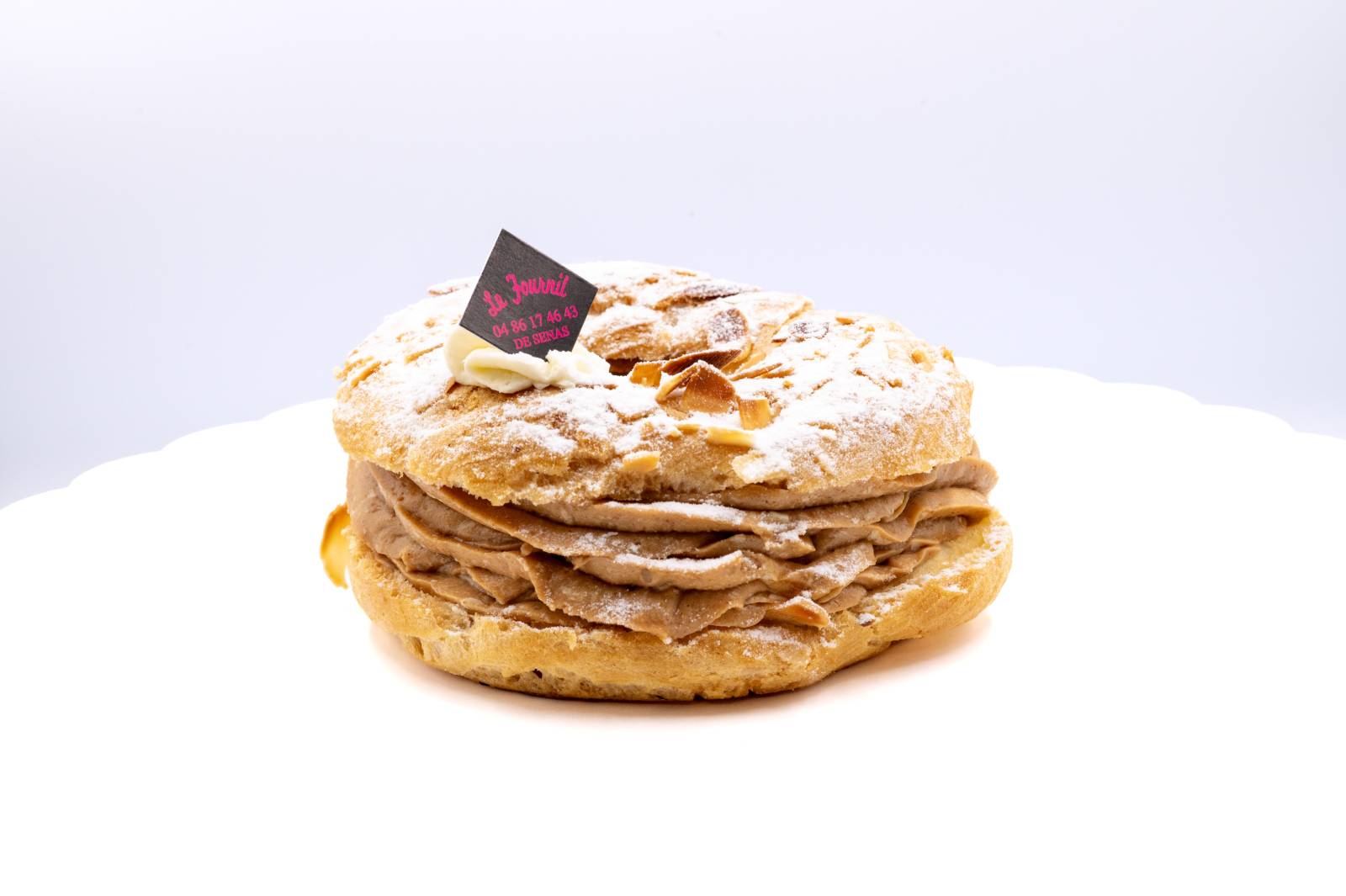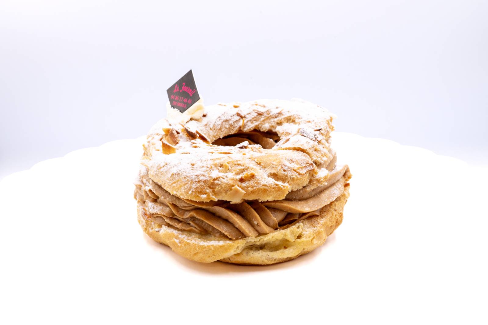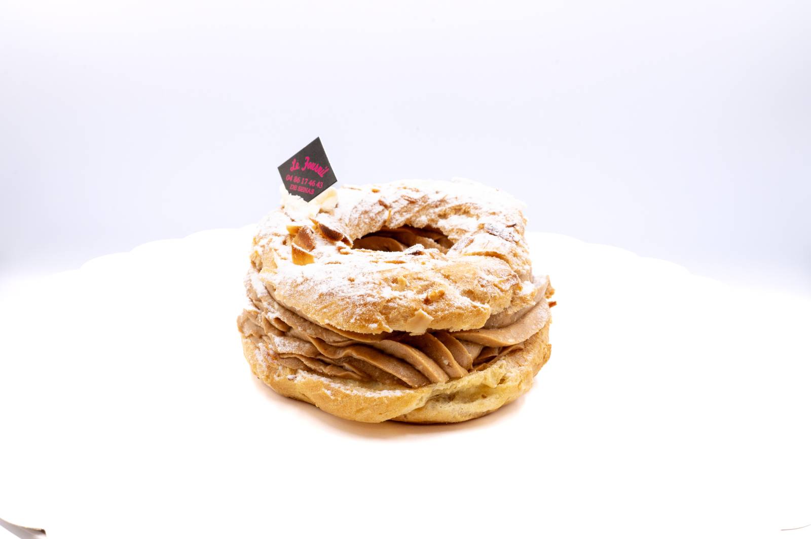 Au Fournil Mangiante à Sénas, notre Paris-Brest ne se contente pas de rouler, il fait chavirer les cœurs et dérailler les papilles ! Entre sa pâte à choux moelleuse, sa crème pralinée onctueuse et son goût irrésistible, il enchaîne les tours de piste pour vous offrir un plaisir inégalé.